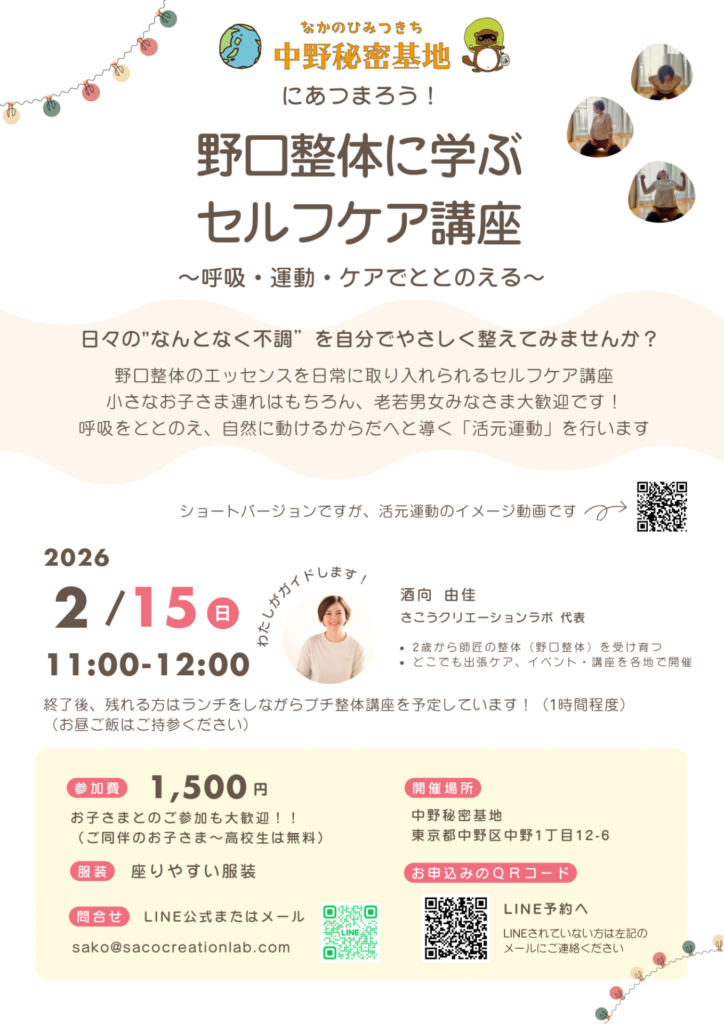 野口整体に学ぶセルフケア講座〜呼吸・運動・ケアでととのえる〜