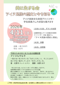 今回は、アイヌ民族の歴史と現在について学ぶ会を開催します。