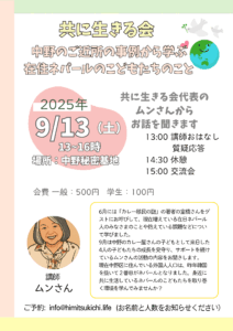 9月は共に生きる会代表のムンさんから「中野のご近所の事例から学ぶ在住ネパールのこどもたちのこと」のお話を聞きます。
