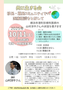 10月は横浜市港町診療所医師の山村淳平さんのお話を聞きます。
