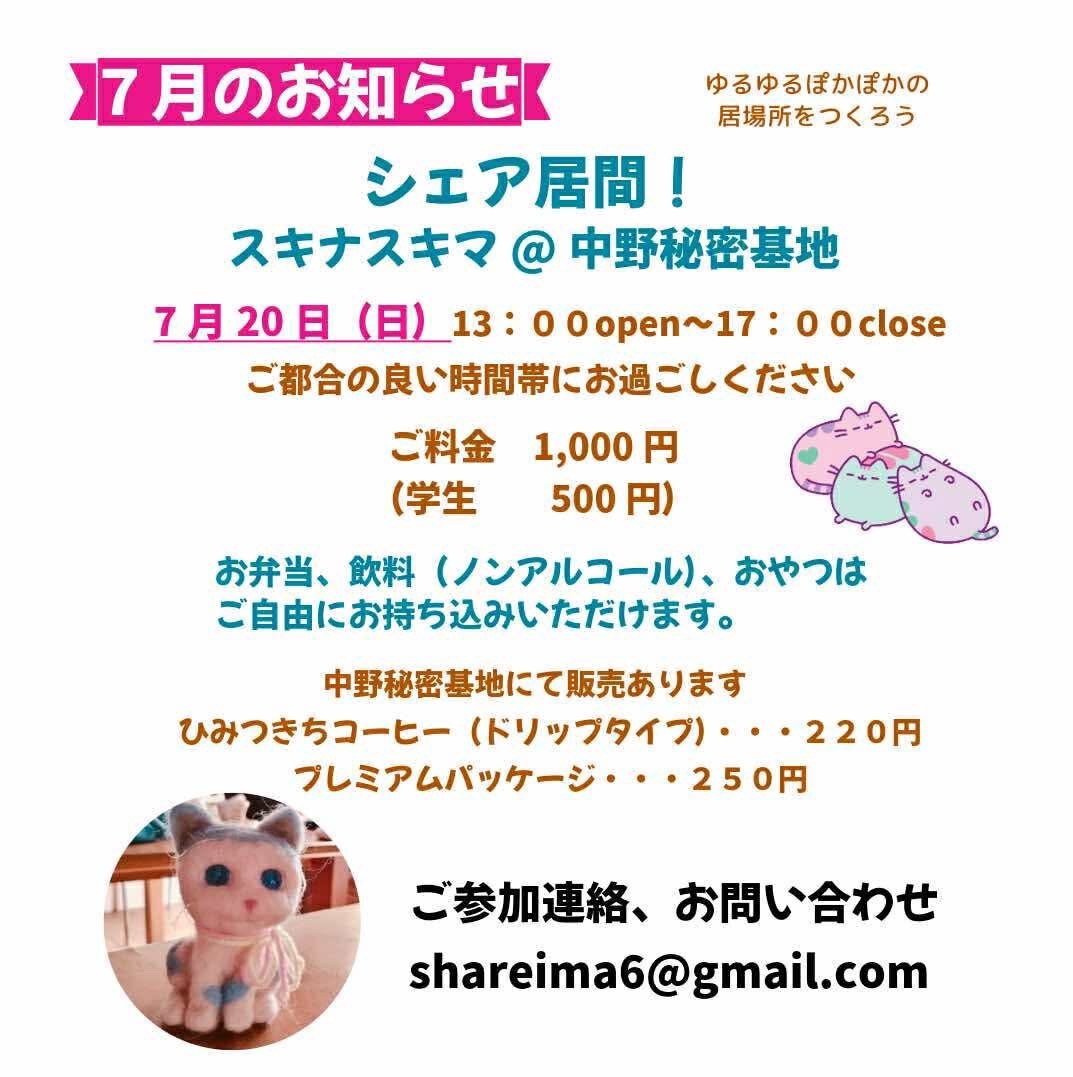 7月 20, 2025 @ 1:00 PM - 5:00 PM シェア居間⭐️スキナスキマ 7月20日 中野秘密基地 中野区中野 1-12-6 東京都 日本 シェア居間⭐️スキナスキマ 7月20日 13:00〜17:0 […]