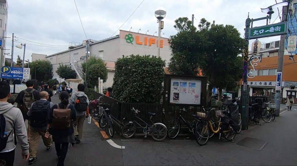 ライフスーパーマーケットを右手に見ながら先へ進み、細い路地へと入っていきます。かつてここに川が流れていたことを想像しながら歩きました。