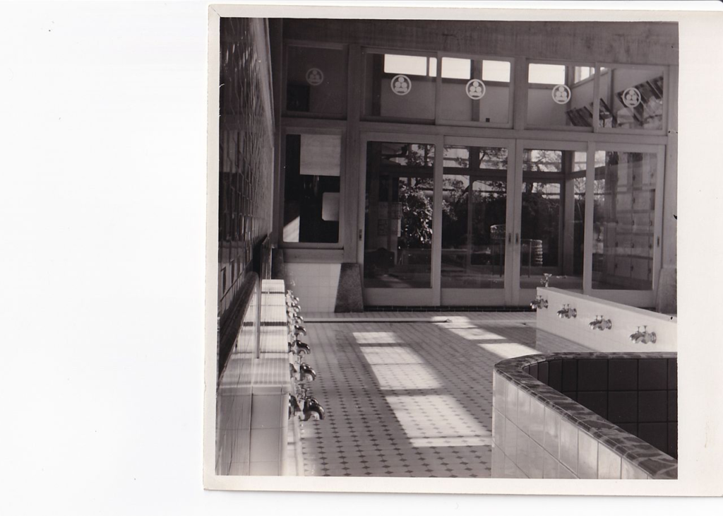当初は薪や鉋屑などを燃やして湯を沸かしており、大きな煙突がありました。その後、重油、そして現在のガスへと燃料が変わり、煙突も小さなステンレス製のものに。現在の建物は昭和30年頃の建築とみられ、梁や窓のガラスなど、当時のままのものも多く残っています。古い写真を見せていただきながら、当時のお話をうかがいました。
