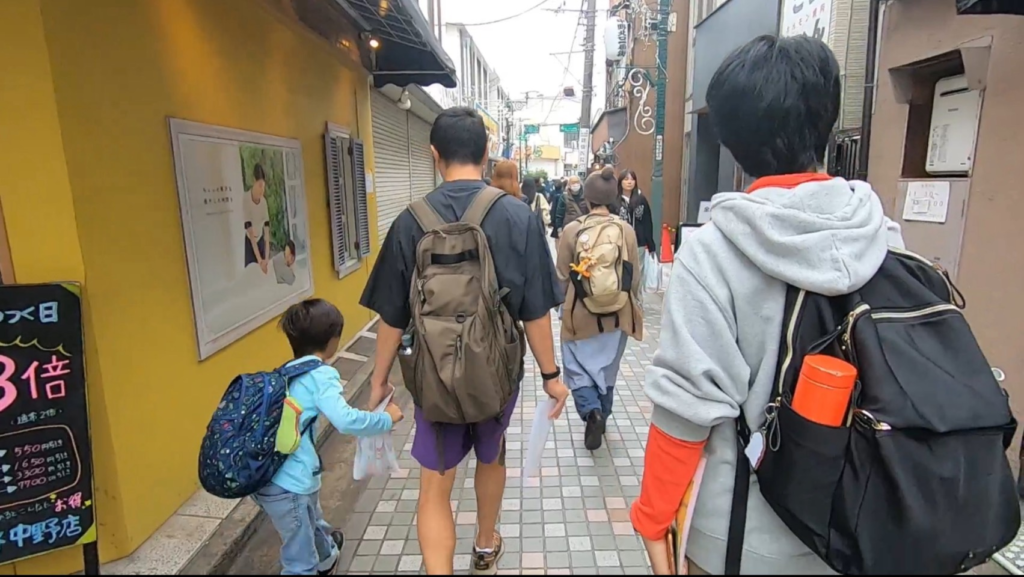 中野サンプラザでの説明が終わると、トコトコ歩いて行きます。