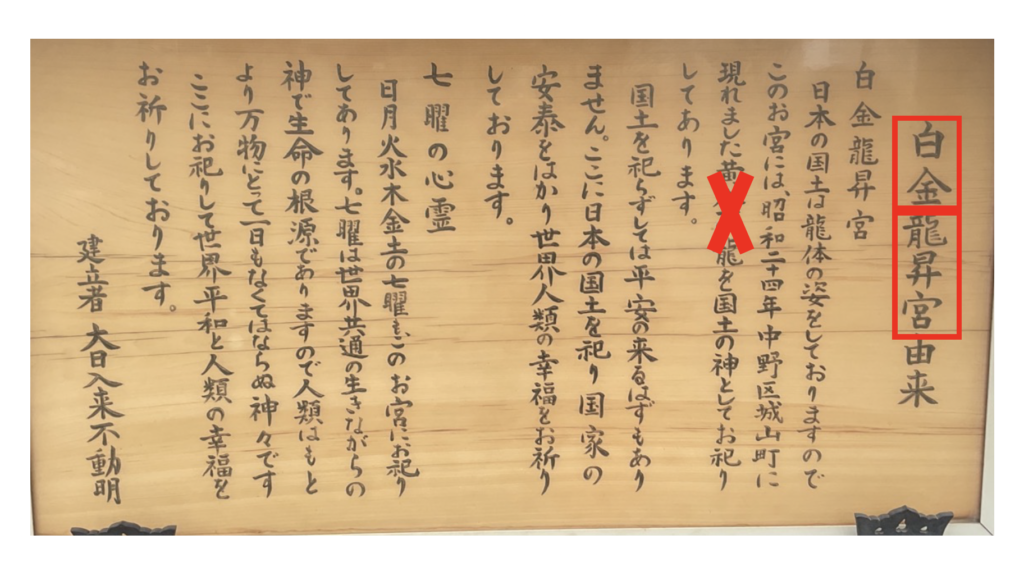 境内にある『白金龍昇宮由来』と書かれた案内板には、以下のように記されています。